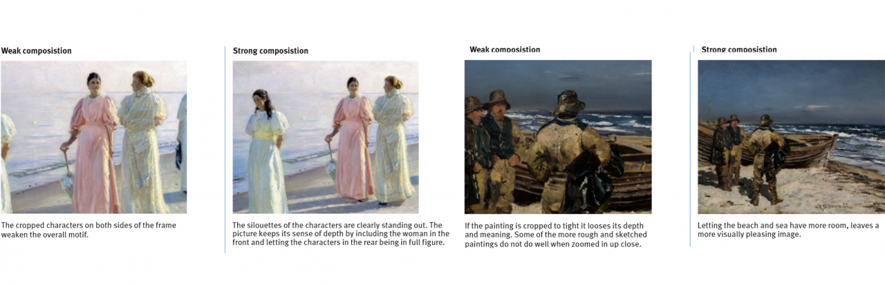 The original Skagen paintings can be used just as they are or cropped. Cropped, folded and overprinted images must be approved by the Art Museums of Skagen. Combine the painting copy that references the motif. The copy should be creative and you are free to use at humoristic approach to generate an add with SKAGEN feeling and attention. All images can be downloaded from our image archive on brandguide.io (link). Ask Brand Management in SKAGEN for access.