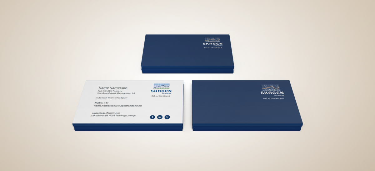 There are two different versions. One for employees in SKAGEN AS, and one for employees in SAM that works with the SKAGEN Fund brand. For those working in SAM – we must include Storebrand Asset Management as part of the job description. The language for the card will be decided based on market usage, for Portfolio Managers English will be default. Template can be downloaded below.