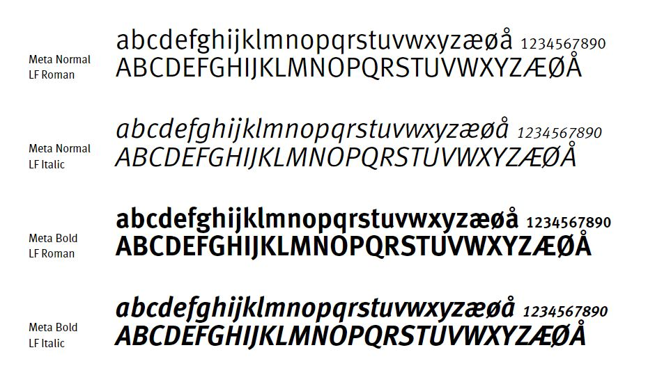 The font used for SKAGEN Funds in all printed media and some digital media is Meta LF. Please note that Meta is available in many variations, and that the version designated LF is the correct one. Meta LF may be used in the variants shown on this page. Body copy is mainly typeset in 100% black, whereas the SKAGEN colour scheme may be used on headings and sub-headings. The main rule is that the font size should not be less than 8 points due to readability. Exceptions are disclaimers and charts, where the font size may be somewhat smaller.